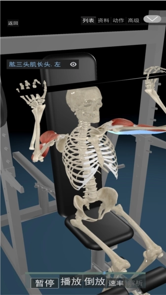 2、动态演示:借助精准的3D动画,呈现肌肉运动与关节活动的关联,支持视角自定义,方便用户观察和深入理解。