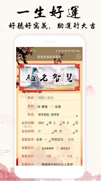 根据五行、数理、生肖的评分规则,周易生辰八字取名软件为用户提供了强大的取名功能。