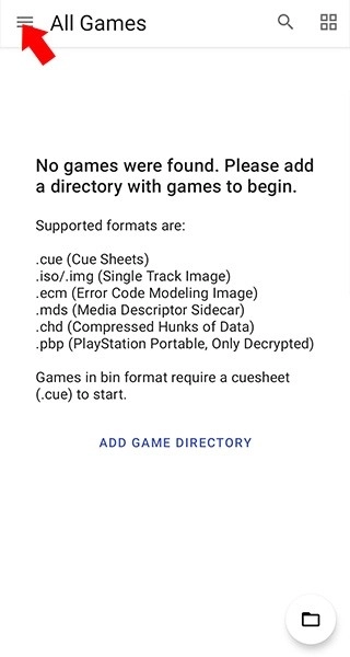 1、启动DuckStation模拟器,待手柄与手机设备连接成功后,点击界面左上方的三条横线图标按钮