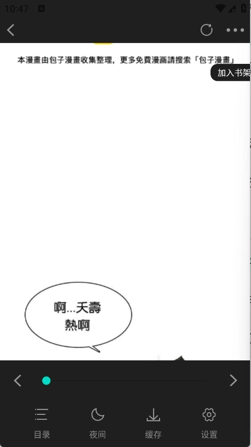 -离线追更必备:进入漫画详情页,点击离线缓存,可选择单章 / 全卷;无网时直接从书架打开已缓存章节,不耗流量。