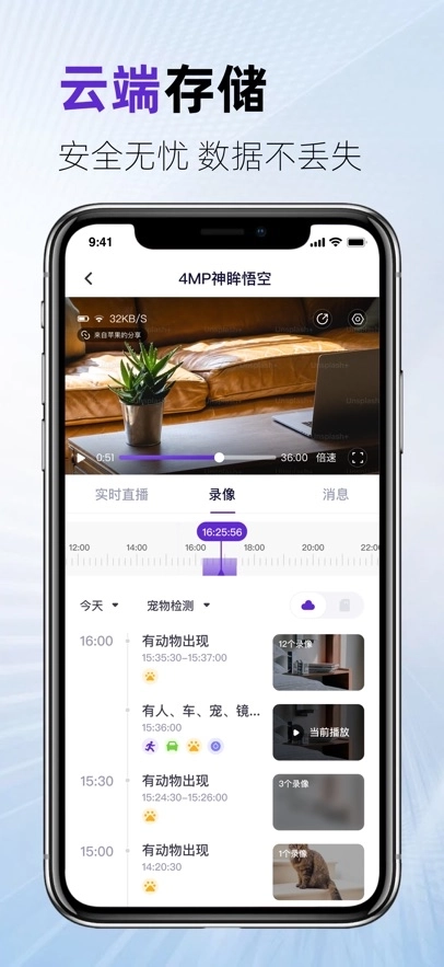 4、配备免费7天滚动云存储功能,重要事件会自动留存,无需付费即可使用,且数据经过加密处理,安全性有保障。