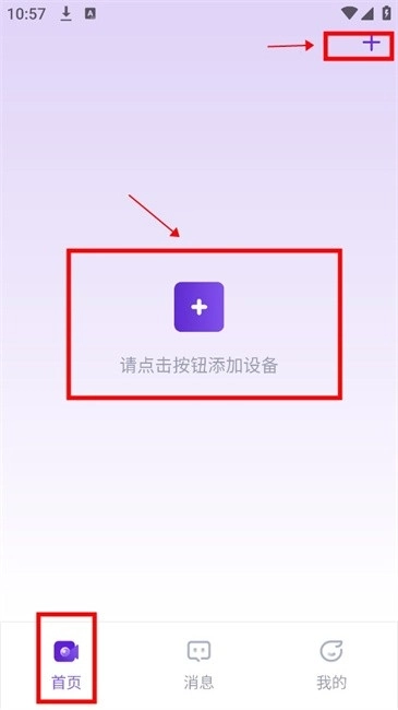 1、首先在首页点击中间或者右上角的“+”号,进入添加设备的界面。