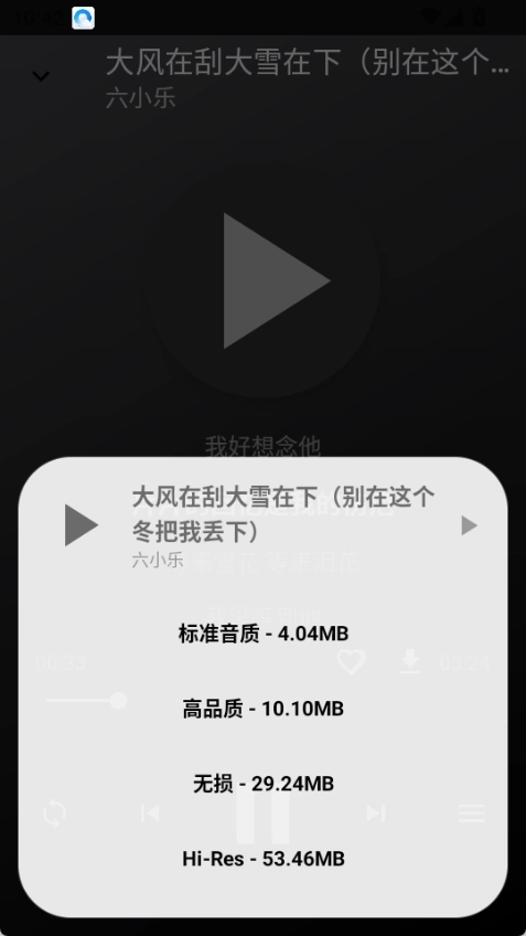 3、提供标准、高清、无损FLAC、Hi-Res等多种音质选择。