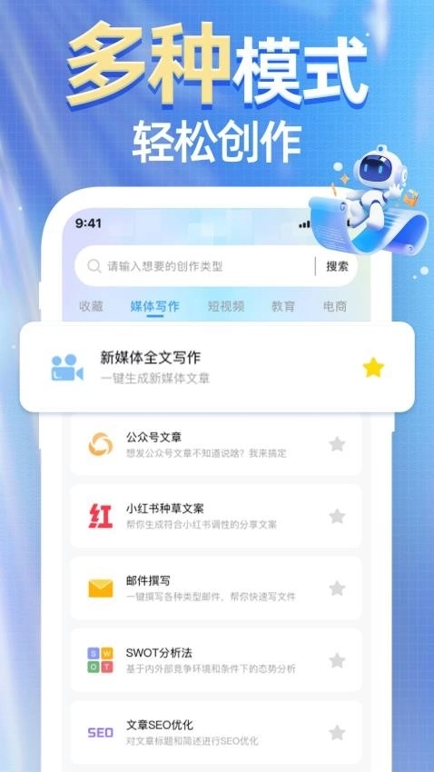 1、提供多种写作模式支持,助力用户轻松开展创作,丰富的模式选择让上手使用更简单。