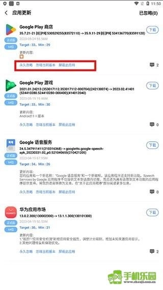 3、当然,您也有权选择忽略那些您暂不想更新的应用。