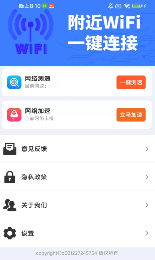 WiFi钥匙全天快连是一款专业实用的网络测速工具,可迅速检测网络速度并分析其稳定性。该软件汇聚了大量免费WiFi资源,助力用户在任何时间地点都能畅享流畅网络。网络优化操作便捷,只需一键即可实现提速,从此摆脱网络卡顿困扰,同时还能确保上网安全,为用户带来更稳定的网络体验,让上网变得轻松简单。