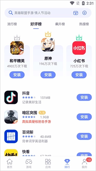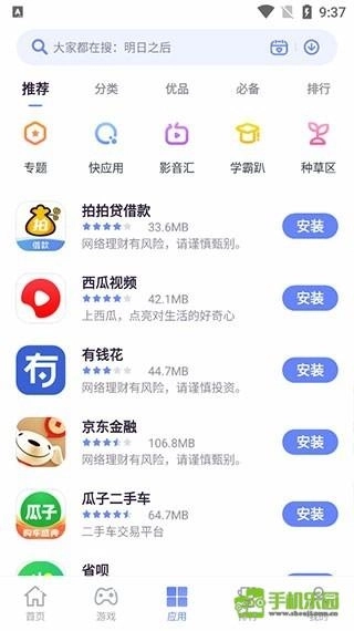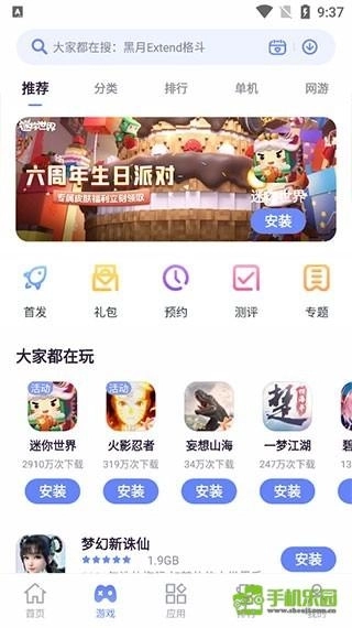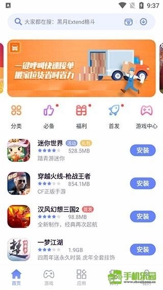 2、之后就是首页,这里是一些热门的游戏或应用;
