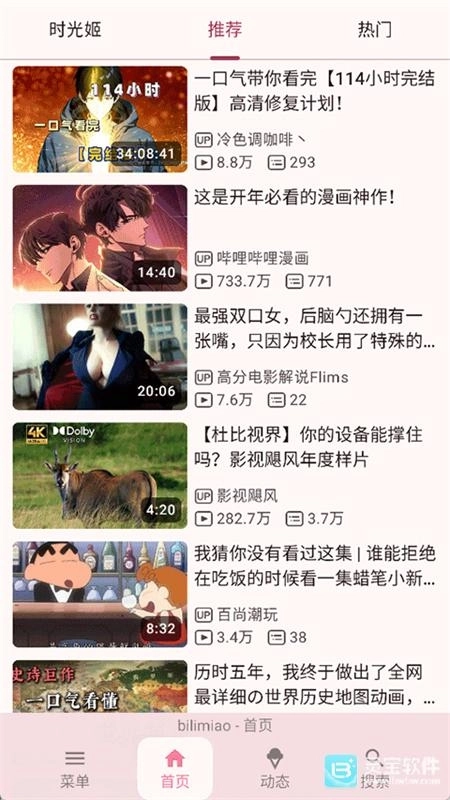 1、界面和哔哩哔哩客户端相同,简洁清爽,简约且。