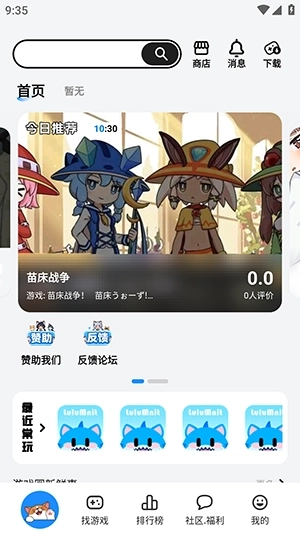 3、LuluMint游戏中心首页可直接浏览海量免费游戏与应用,也能搜索所需内容