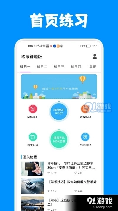 2、驾考答题版具备详细的课程模式,让你随时随地都能练习试题,轻松考取驾照。