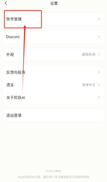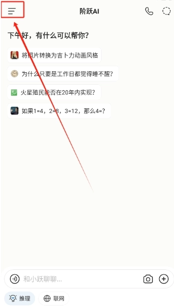 1、进入阶跃AI软件首页点击标记处位置