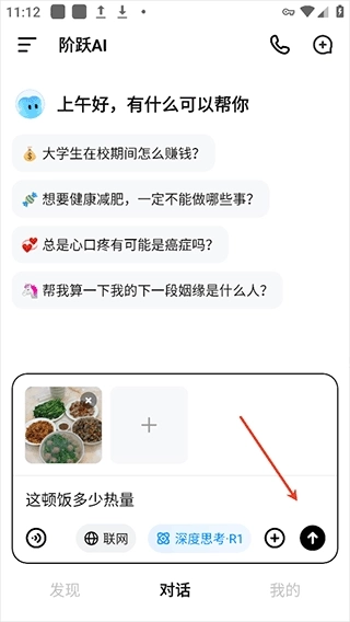 1、打开并登录阶跃Ai软件后,在对话页面,点击右下角如图所示的加号