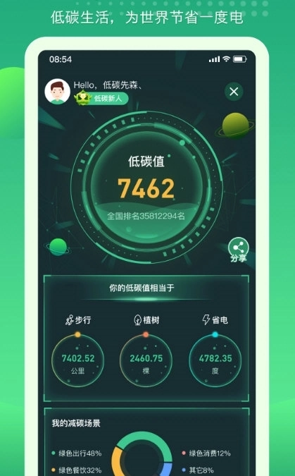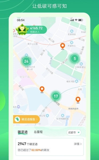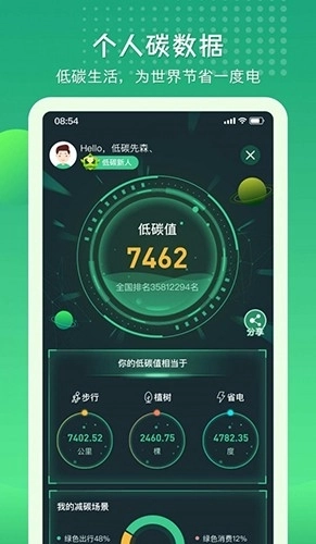 2、记录你的碳足迹,让你了解自身行为对环境产生的影响,进而探索降低碳排放的途径。