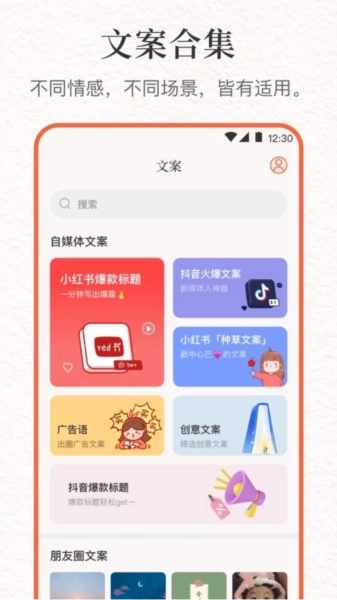 搜索功能:当用户清楚具体的文案内容或关键词时,可借助搜索功能来查找。在搜索框内输入关键词后,系统会呈现相关的文案结果,供用户挑选。