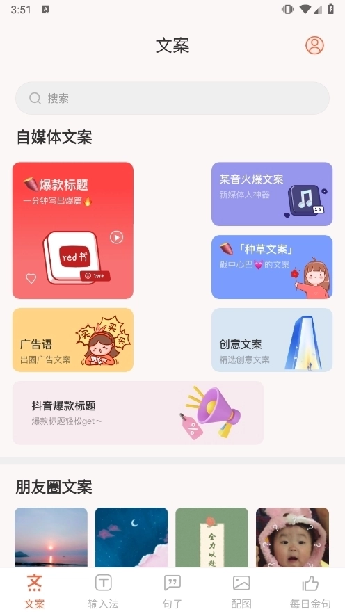文案句子库涵盖了各类自媒体文案、朋友圈文案以及名人名言等内容。不管你是自媒体从业者、内容创作者,还是日常喜欢社交的普通用户,都能在这里获取到需要的文案素材。这款应用配备了便捷的搜索功能,用户可以迅速定位到想要的主题文案。而且,软件还提供了海量的朋友圈配图资源,帮助文案与图片实现巧妙搭配,让分享内容更有吸引力。