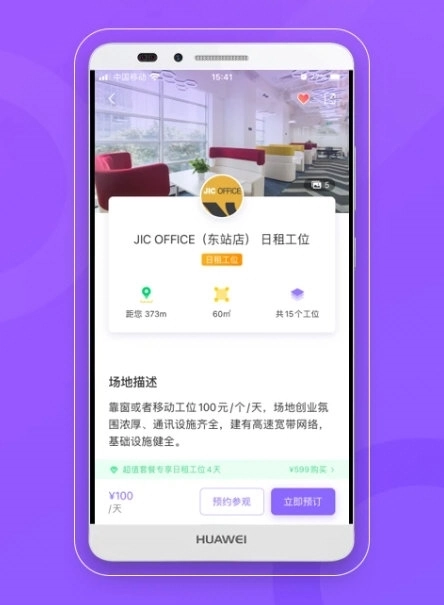 您可以自由选择长租或短租模式,空间预订支持按年、月、天、小时等不同时间单位进行。在线即可完成下单流程,操作便捷程度如同预订电影票一般简单高效。