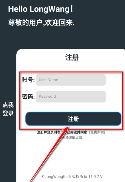 3、填写账号/密码点击注册