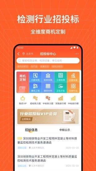 【招投标查询】提供检测行业招投标项目数据的一站式查询服务,还能根据需求进行个性定制,并实时推送商机动态信息。