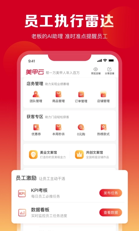 4、美甲云可实时掌握门店业绩情况,检查员工对计划的执行状况,助力门店达成高效的运营管理目标。