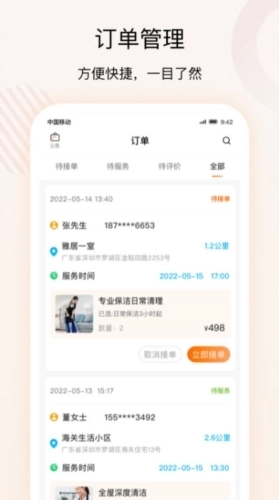 智能派单系统:依据订单的具体信息,智能匹配并指派最合适的员工,以保障服务的高效开展。