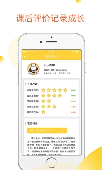 陪练老师会依据孩子每周的练琴数据报告,在陪练课上针对孩子的情况开展精准指导,助力孩子攻克练琴过程中的重难点问题。