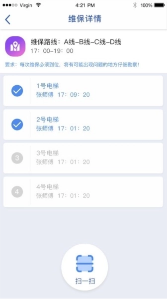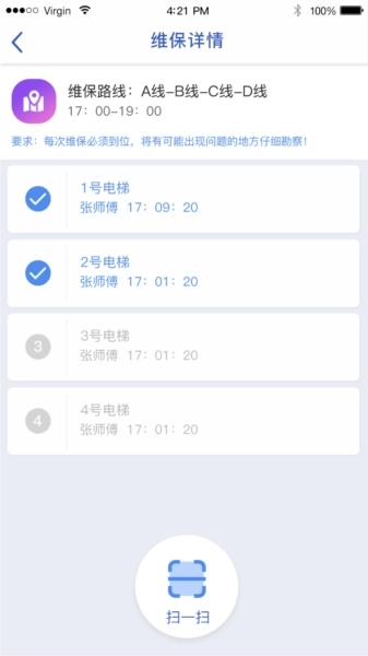 在维保详情页面,点击扫描功能即可对设备进行巡检。