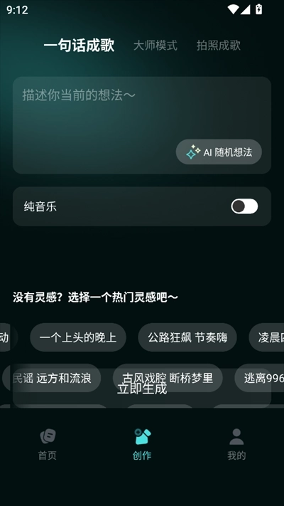 想快速创作的话,选「一句话成歌」就行,直接输入灵感文字,解除字数限制后就能自由描述想法了。