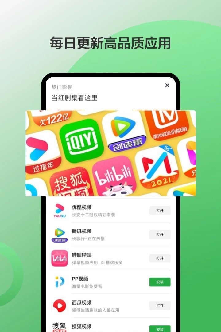 1、豌豆荚整合了29家应用商店的资源,收录的应用与游戏数量已超200万。拥有如此全面的应用库,任你尽情探索体验;