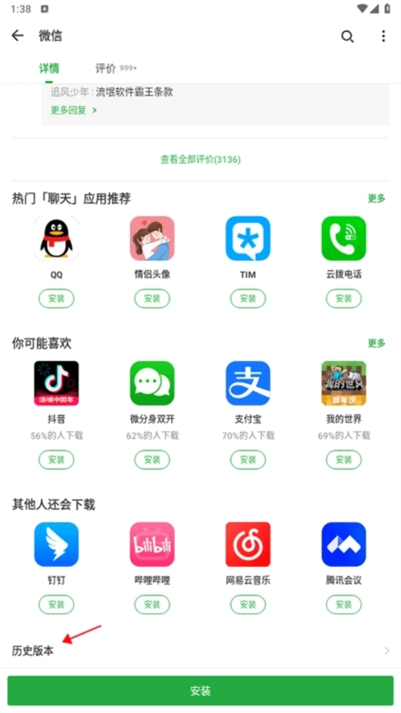 4、历史版本区域会展示最近的三个版本,若需查看更早的版本,可点击“查看更多历史版本”,即可获取该软件的全部版本记录。