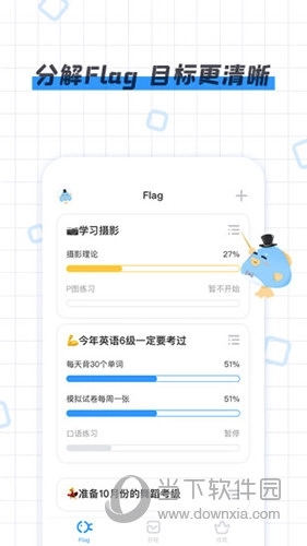 咸鱼flag是一款用于管理个人目标进程的软件,它能为你带来更多学习相关的体验。为自己设定一些目标,有助于更顺利地完成它们。你可以根据每天不同的日程进行选择,这里还有许多挑战等待你去尝试。通过将flag细化,可以降低完成难度。在你立下flag后,该软件能协助你分解目标,让你更轻松、愉快地完成flag。当你拥有更清晰的完成步骤时,也更容易达成所立下的flag。除了分解flag,它还具备专注当天安排、设置提醒、补卡、修改当天时间安排、记录成就等功能。借助这些功能,你可以逐步成为更好的自己。