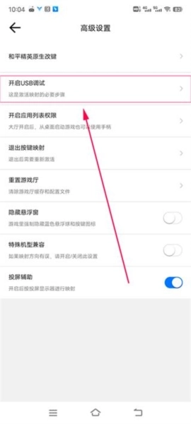 2、进入高级设置后,我们点击“开启usb调整”选项,随后软件会自动跳转到系统界面。