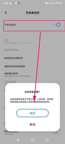 3、进入开发者选项界面后,需勾选“开发者选项”这一选项。
