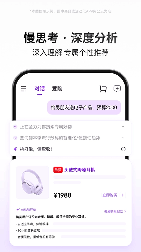 沉浸式体验:担心不会挑选商品?别发愁!我们为你打造个性化商品推荐流,手把手教你挑选技巧,还会帮你总结商品参数与用户口碑,让购物决策更高效。