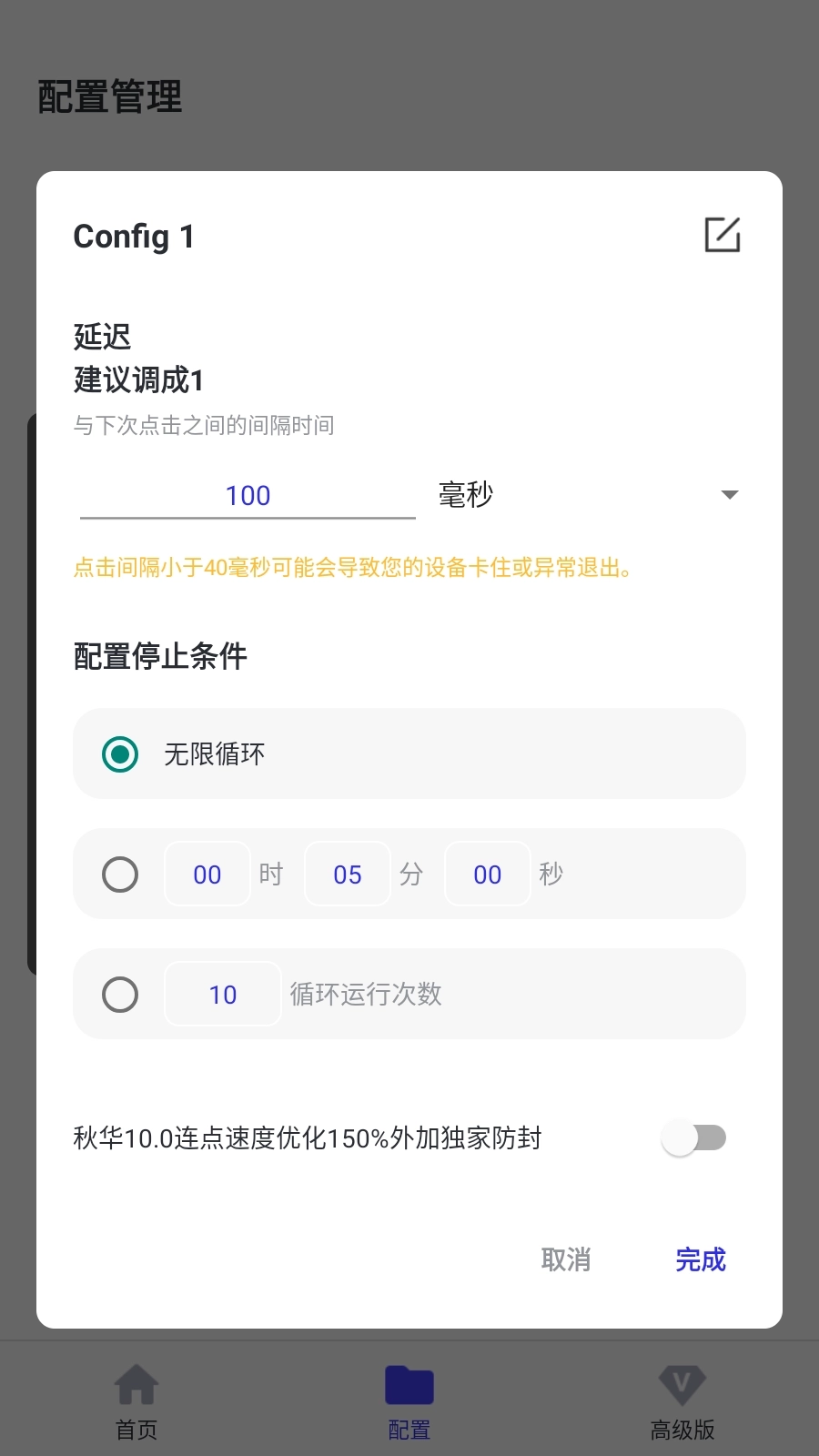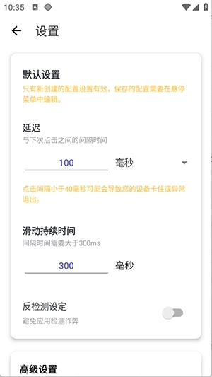 当点击间隔设置小于40毫秒时,有可能引发应用意外退出。为了保护设备性能并提高操作成功率,建议在进行高频操作时采用“短时间集中操作+间隔休息”的模式。