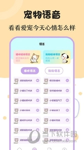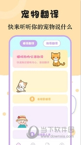 2、宠物翻译功能:这款动物翻译器既能把你的声音转换成猫咪或狗狗的叫声,也能将爱宠的叫声转化为人类语言,从而实现人与宠物之间的无障碍交流,让你能轻松和爱宠对话。