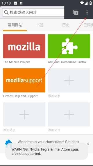 1. 在浏览器首页,点击右上角的【三点图标】,即可打开功能操作菜单。