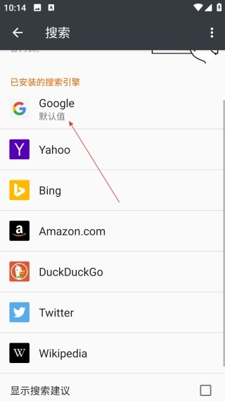 4、进入搜索设置页面后,勾选【Google】,即可将其设为浏览器的默认搜索引擎。