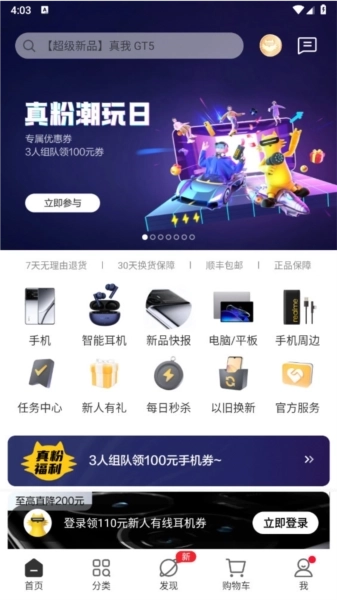 realme商城作为realme公司的自营电商平台,您能在这里及时获取我们全系列产品的资讯,掌握realme产品的第一手动态!我们致力于为全球年轻用户提供拥有越级性能与潮流设计的高品质手机、AIoT产品及相关服务。此外,用户在商城还可参与各类粉丝福利活动,像每周五到周日的“真正宠你”活动,秒杀、优惠券福利不间断,邀请好友下单还能赚积分;而新品发布、促销等特殊时段,也会不定期推出更多福利。