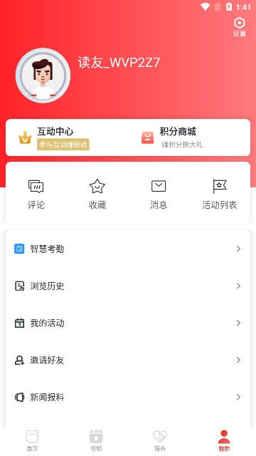 3、进入个人中心页面后,找到“设置”选项并点击,即可进入软件功能设置界面;