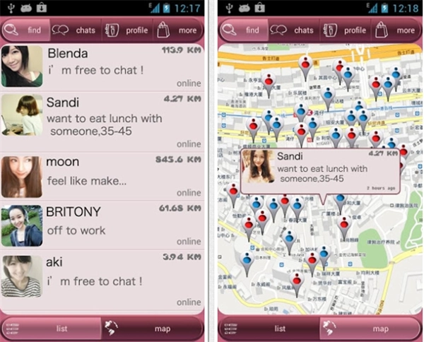 SayHi!能够依据地理位置查找附近的人,还能根据性别进行筛选。您可以查看对方和您的距离,以及对方的资料与状态,并且可以自由地和对方聊天。