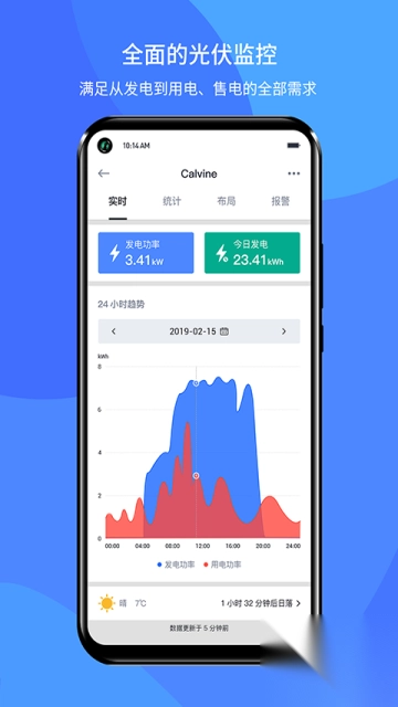无论何时何地,打开小麦智电就能查看光伏电站的运行状态。发电、用电、电池、电网等各方面数据(包括实时数据和历史数据)都很完备,能满足你所有的监控需求。
