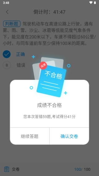 3、点击进入刷题板块,像模拟考试这类练习就完全还原真实考试场景,从开始答题起系统便自动计时,总共一百道题目,用户需要在设定的时间范围内完成作答。