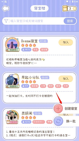 1、在寝室版块中可以创建寝室;