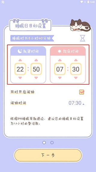 2、选择就寝时间和起床时间;