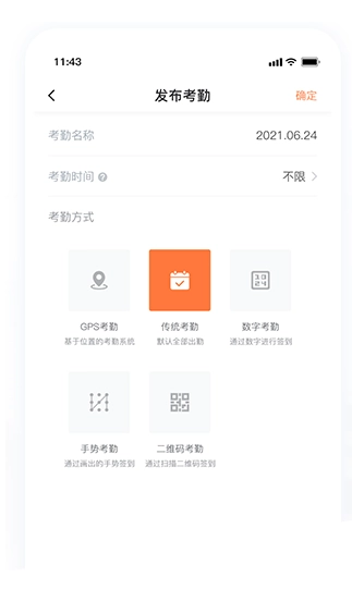 6、开始上课后,老师在考科一时会发布考勤,并且有五种考勤方式可供老师选择。