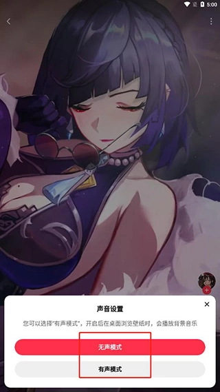 4、完成后系统会自动进行设置,动态壁纸还带有声音功能。您可以选择开启有声模式,这样在桌面浏览壁纸时就会播放背景音乐;要是不喜欢,也能设置成无声模式。
