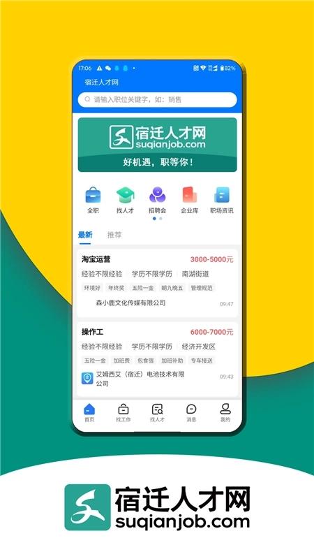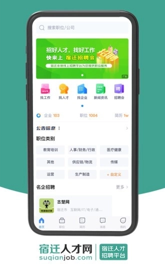 宿迁人才网是一款专为宿迁地区打造的线上招聘平台,汇聚了当地大量优质企业资源,每日为求职者推送丰富的职位信息。用户在这里能随时浏览并投递心仪岗位的简历,企业也可通过平台精准寻觅所需人才,切实为本地用户求职提供了有力支持。平台还搭建起招聘与求职双方的沟通桥梁,助力企业与人才高效对接,双方可在线实时交流、及时互动,既让求职者不错过工作机会、便捷完成咨询,也方便企业邀约合适人才面试,无需出门就能掌握周边的岗位与人才动态。