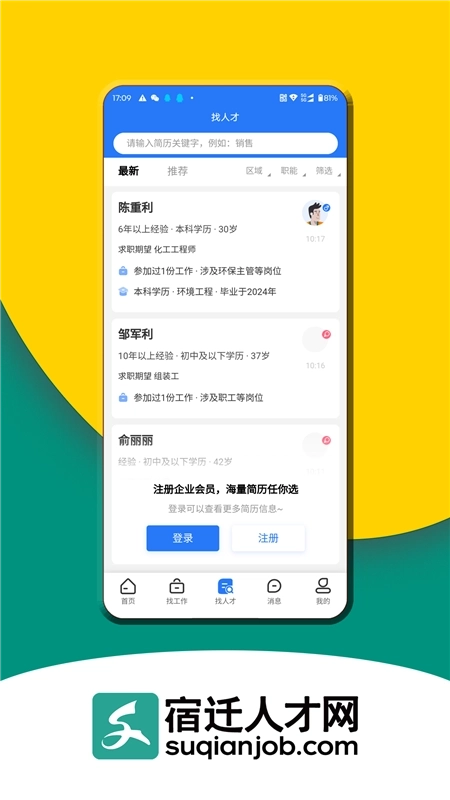 3、借助宿迁地区规模最大的人才简历数据库来寻觅理想的人才。