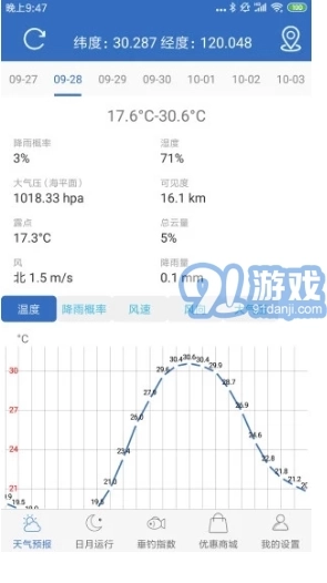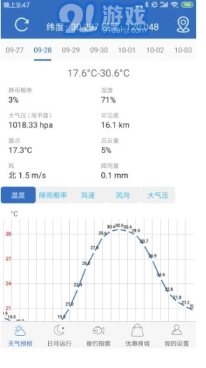 2.日月运行相关信息:包含日出、日落、月出、月落的具体时间,还会呈现日月黄经的差值、月亮的照明比例等内容,助力用户精准抓住钓鱼的黄金时段。