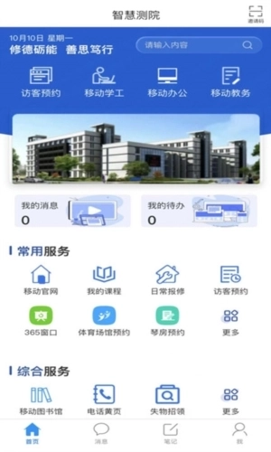 智慧测院是河南测绘职业学院为全院师生打造的专属移动校园应用,师生们能借助这款软件便捷获取丰富的学习资料、校园动态、课程详情等内容,为日常学习与生活带来便利;该平台的搭建,旨在达成“无处不在的移动学习、融合创新的网络科研、透明高效的校务治理、丰富多彩的校园文化、方便周到的校园生活”这一智慧校园目标,让河南测绘职业学院的智慧校园建设成果切实惠及每一位师生。